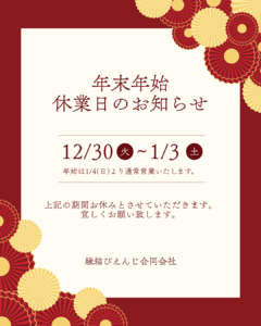 当社の年末年始は下記の通りとなります。
